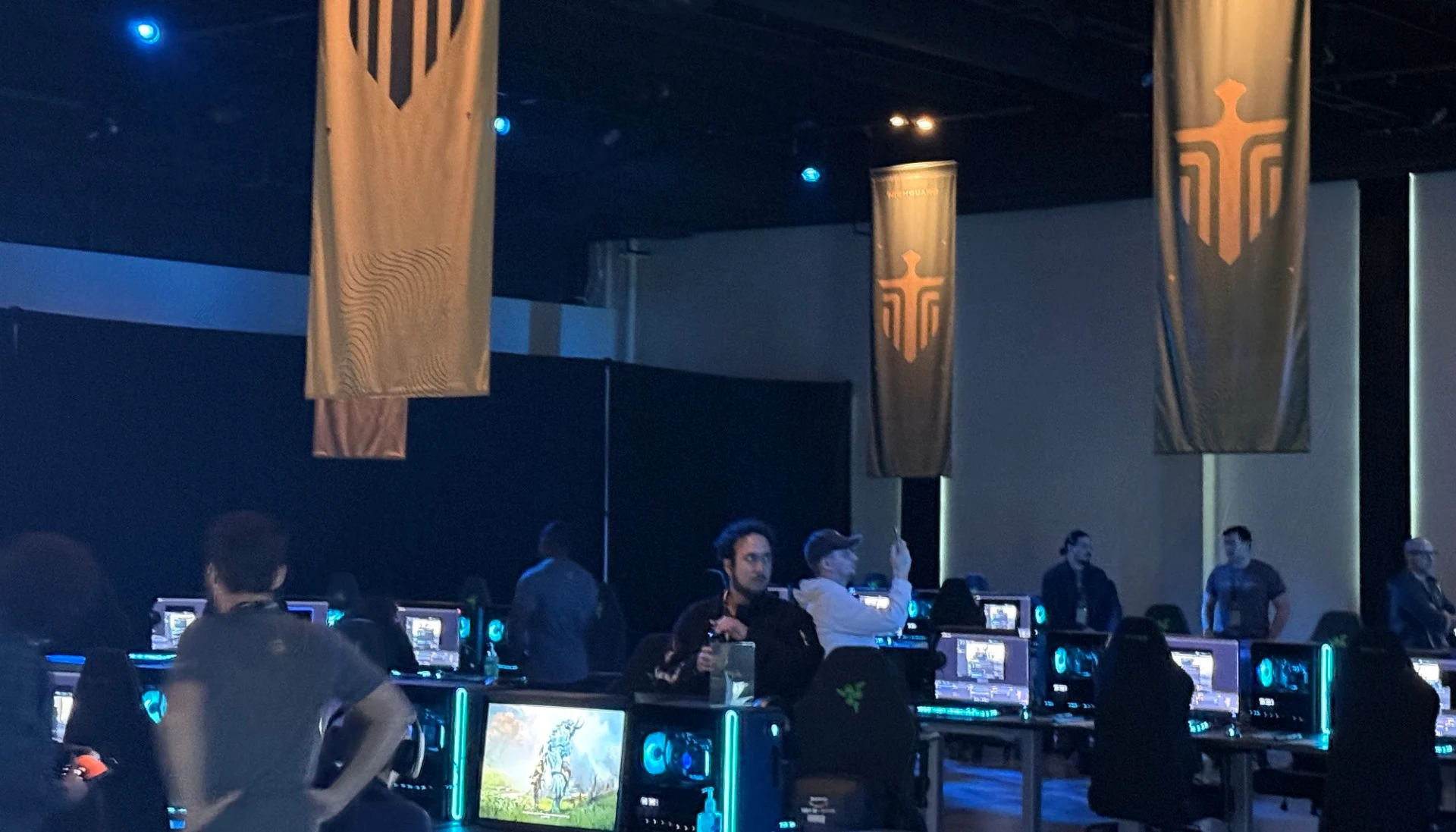 Entering the auditorium, I noticed the venue was cut up in two halves. On the proper have been teams of PCs, 6 a bit, paired with some very costly Dell 4K OLED displays. While by default gamers might play with mechanical keyboard and gaming mouse, Wildlight shortly famous that anybody who wished to play with a controller might request both a PlayStation 5 Dualsense or an Xbox Wireless Controller, and they’d convey one proper over. On the alternative wall was a set of 3D fashions of in-game belongings, heaps of idea artwork showcasing the sport’s world and its characters, and extra.