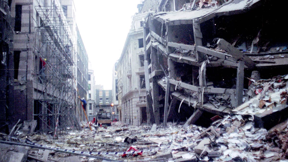 Labour has been accused of letting IRA terrorists ‘rewrite history’ after it emerged former paramilitaries may sit on a veterans’ board – as nine fresh cases look set to be brought against British army veterans. Pictured: the aftermath of the IRA bomb which destroyed London’s Baltic Exchange in April 1992