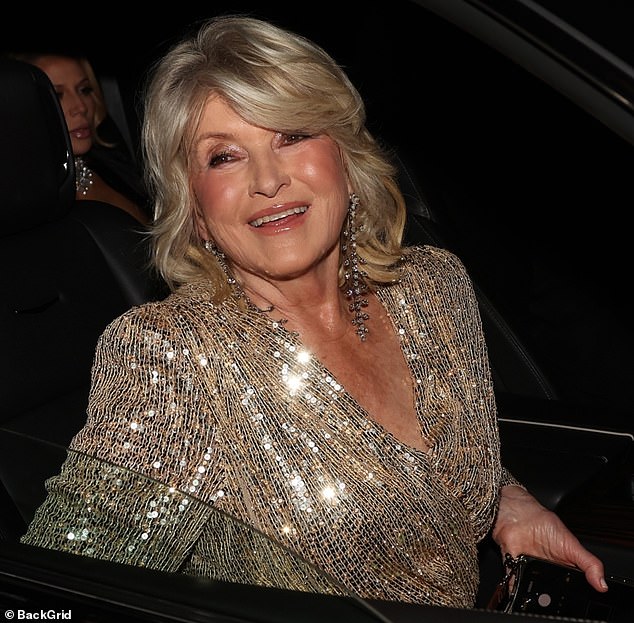 Martha Stewart was the image of retro glitz in a shimmering gold sequined top and a sparkly set of lime green trousers as she emerged from her car.