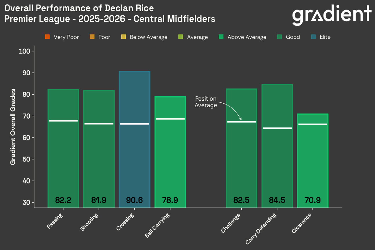 But in addition to his unbelievable defensive vary and instincts, he is developed right into a sometimes-dangerous and really safe passer. Per Gradient, he has the highest passing grade whereas beneath stress of any midfielder in England.
