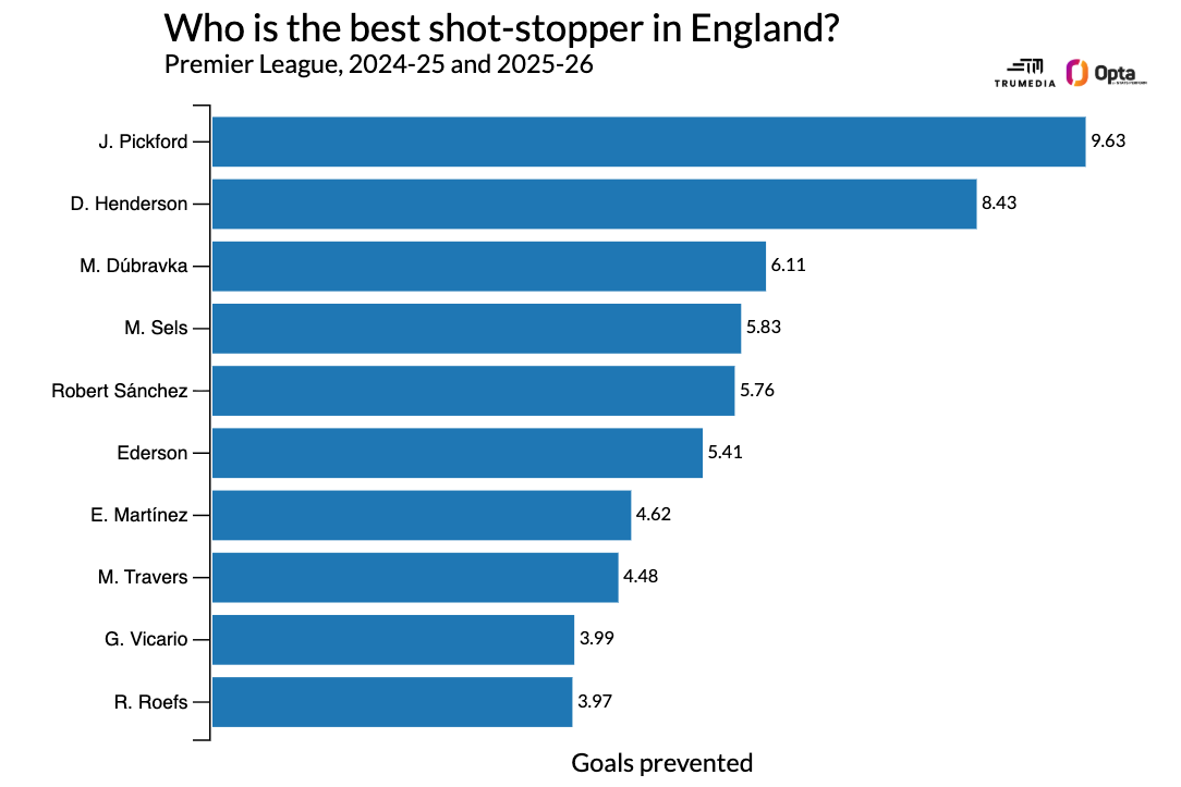 Of be aware: Arsenal’s David Raya has conceded practically two objectives greater than anticipated, whereas Liverpool’s Alisson Becker is nicely under common this season and only one aim higher than common over the final two seasons mixed.