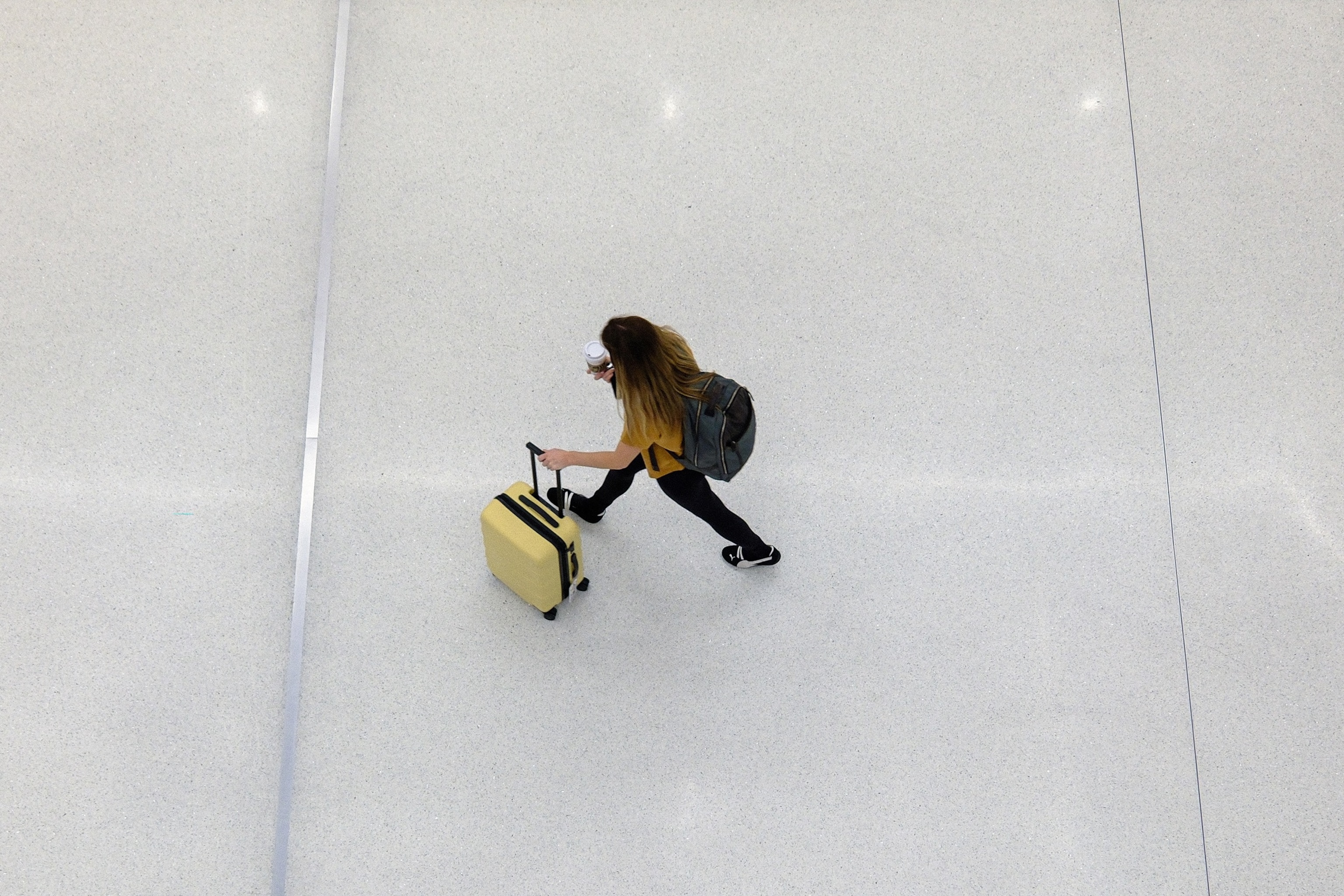 A woman makes her way in Terminal B at LaGuardia airport in the Queens borough of New York City on day 41 of the government shutdown, on Nov. 10, 2025.